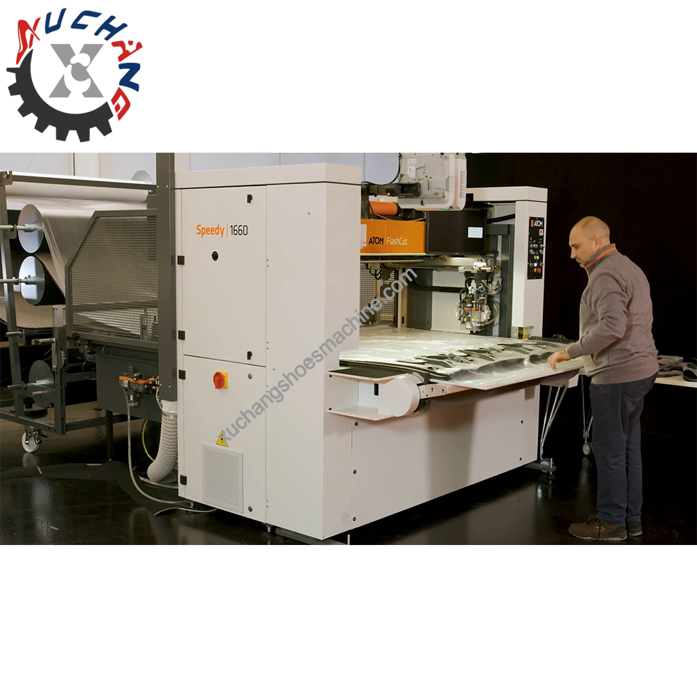 High production knife cutting systems The double cutting head together with maximum precision, reliability, power and speed, peculiar of ATOM tables, make the Speedy models the perfect instruments to obtain maximum production and efficiency. These features make them perfect for footwear and leather goods. LOGO TYPED MATERIALS The Intelliscan system in-line scans the logo typed materials. Together with the nesting algorithm, it allows to automatically place shapes to be cut, considering the graphic of printed materials. HIGH BRIGHTNESS PROJECTORS High brightness overhead projectors assure a clear visualization of any material or color in any environment. Using LED lamps they grant high brightness, low maintenance and long life. To speed up and ease the picking of cut pieces, the software managing the back projectors gathers parts by size. 5- OR 7-TOOL CUTTING HEAD To satisfy any cutting need, the Speedy tables can cut with 5- or 7-tool heads, which can be equipped with a wide range of tools.