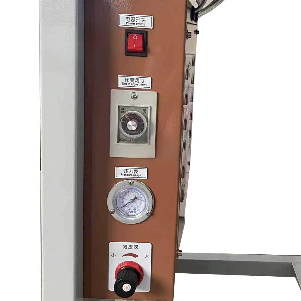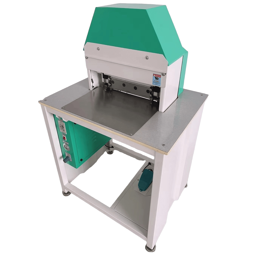 This machine is used for edge trimming of wallet products, the blade is sharp, the cut product has no burrs, the pressing speed can be adjusted, the acrylic plate is safe to protect, it replaces the manual trimming operation, the operation is simple, the efficiency is high, and the cost is saved.